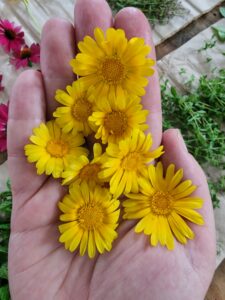 I have been picking and drying the organic pot marigold flowers all through December of last year. Now, I have plenty of these little sunshines to infuse into every batch of Goodness this year. And then, just like that, new and much more resilient golden sunshines will peek through, making way to new hope and even more goodnes.